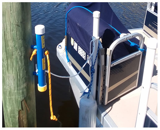 The portable cleats are as easy to install. Simply take the T-bar and slip it between two dock boards and turn it 90 degrees to hold it in place.